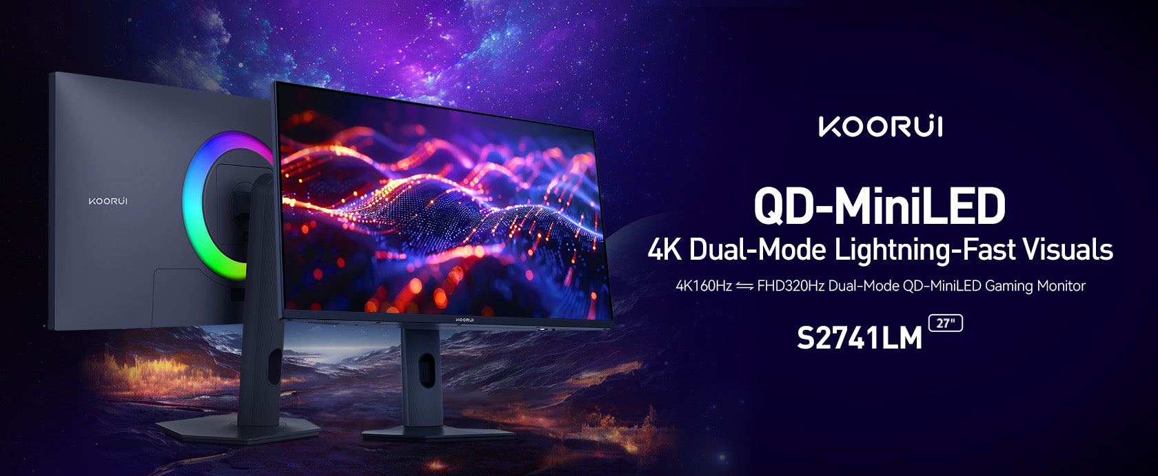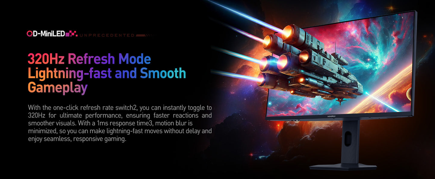 KOORUI S2741LM | 27" 320HZ@FHD / 180HZ@UHD miniLED Monitor | AMD FreeSync | 10bit | DIC 1ms | HDR 1400